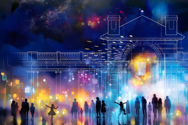 The installation transforms pedestrian movement into dynamic patterns of light and sound, using infrared sensors to track activity and create an evolving audiovisual display. The work is intended to showcase the rhythms of the neighborhood while encouraging visitors to interact with the space in new ways.