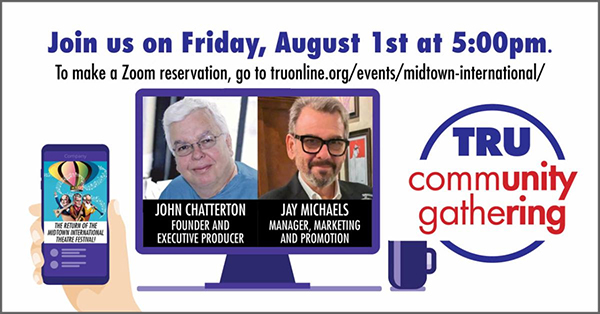 8/1 – A Lost Opportunity, Found: The Return of the Midtown International Theatre Festival. In the room: John Chatterton, founder and executive producer and Jay Michaels, manager, marketing and promotion of the newly revived and rethought Midtown International Theatre Festival. One of the best steps a writer can take in the development of new work is to self-produce (or be produced) in a festival. Though there are always costs involved in producing anything, the shared resources and festival marketing umbrella is a relatively low-cost option for getting a show up on its feet in front of an audience. For 18 years MITF stood as a midtown response to New York’s downtown Fringe Festival, welcoming shows with commercial ambitions as well as the experimental and non-tradition works often associated with “fringe festivals.” Let’s all find out what the plans are for this new incarnation of a New York landmark. What changes are in store in a post-Covid environment? What venues and submission costs are being considered? And crucially: what were some of the lessons learned in 18 years of producing this festival, and how will those lessons be applied in 2026? Click here to register and receive the zoom link.