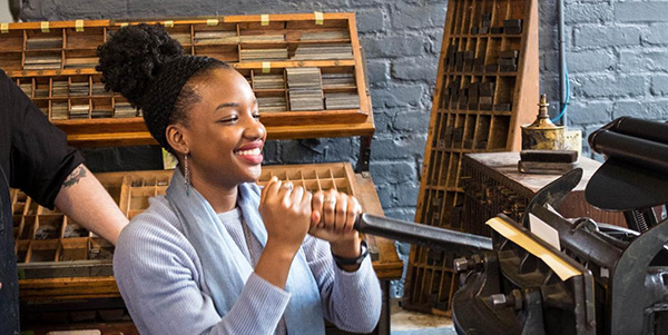 In this workshop, you get to set type from the Museum’s collection of historical fonts, mix ink, cut paper, and print a bespoke edition of 35 notecards using a 19th century printing press. Great for all skill levels, the workshop will engage you in every part of the printing process—we even teach you how to clean the press at the end!