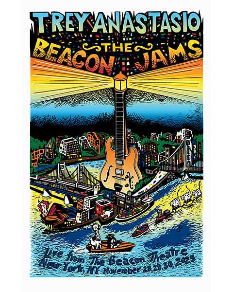 “The Beacon Jams shows were the most artistically satisfying thing I’ve ever worked on,” Anastasio reflects. “They meant so much to everyone involved — not just the audience, but the musicians as well. Everyone was hungry for music and connection, and somehow we found a way to create community in the middle of such a messed-up, isolating moment. Even the name felt meaningful — like we were shining a searchlight into the fog and manifesting something positive out of something so negative.
