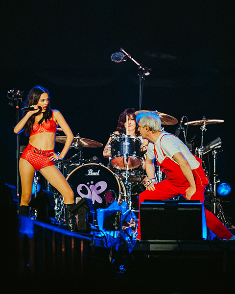 And then—a surprise for the ages. Music legend David Byrne joined her onstage for a duet of Talking Heads’ “Burning Down the House.” Byrne, in red overalls, Rodrigo in sparkly red, danced and riffed through verses, trading powerful vocals and cheeky moves—wrapping in a warm shared embrace that brought the crowd to its knees. The audience erupted—from teenagers to longtime fans—as they jumped and cheered, utterly captivated.
