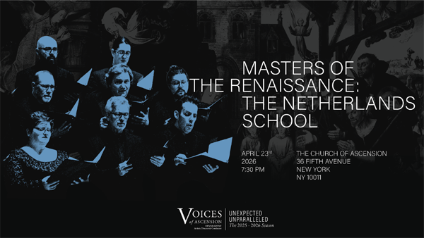 The professional choral ensemble Voices of Ascension will present a program of Renaissance music spanning more than two centuries on April 23 at Church of the Ascension.